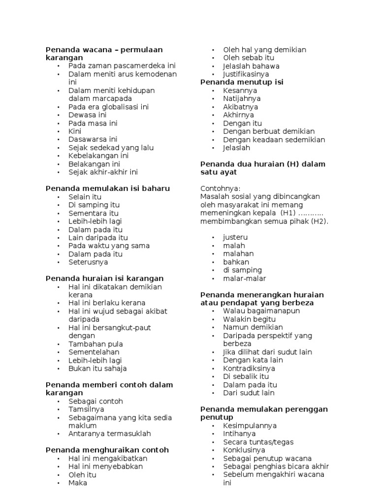 English essays in wacana penanda. Moldova my beautiful country essay. Kegagalan dalam penggunaan penanda wacana yang tepat akan menyebabkan seluruh wacana tidak mempunyai kesatuan dan perpautan yang lengkap. Okay, many people who learn english as their secondary language struggle to use penanda wacana (or discourse markers in english) correctly in their writings, including me, sometimes. Penanda wacana sebagai penghubung sebaliknya atau tentangan.